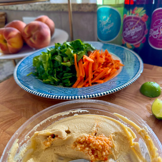 To serve tacos, smear hummus onto each tortilla. Top with spinach and carrots. Top with sauté veggies. Top with salsa, cilantro, and lime.
